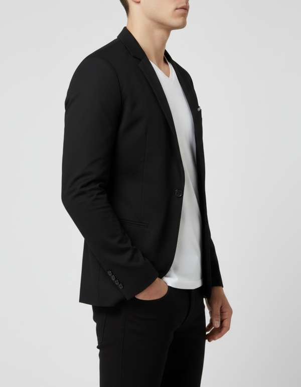 Blazer Slim Fit en drill semilicrado de alta calidad, diseñado para ofrecer un estilo elegante-casual con máxima comodidad y libertad de movimiento